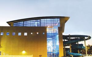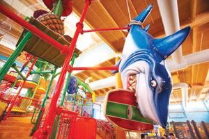 Several special features add depth and variety to the waterpark program. Specialty lighting was introduced to generate excitement and embellish the character of the space by accentuating the well-done theming. The lighting changes throughout the day, with vibrant blue lighting creating a dramatic night-time glow that can even be glimpsed from the