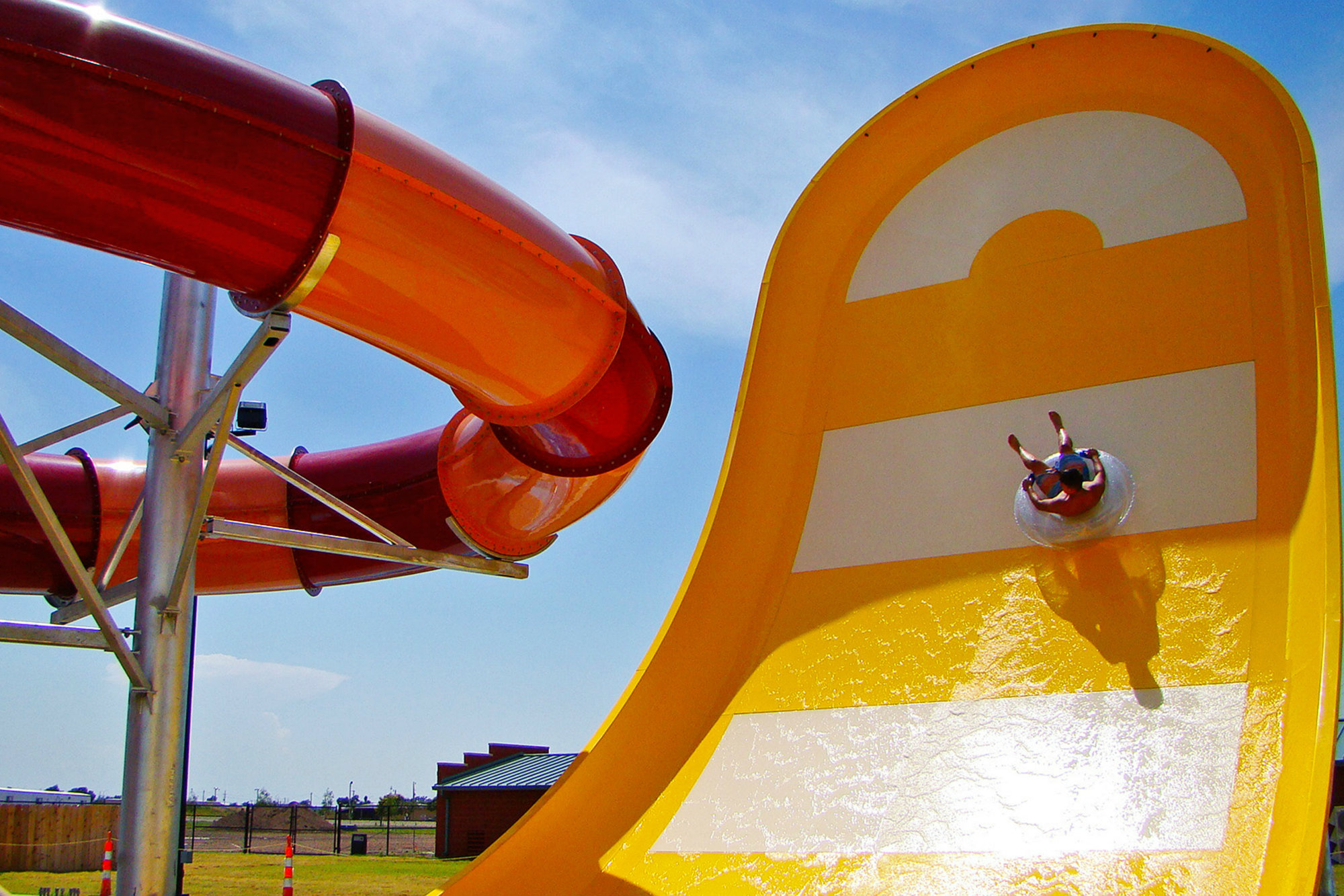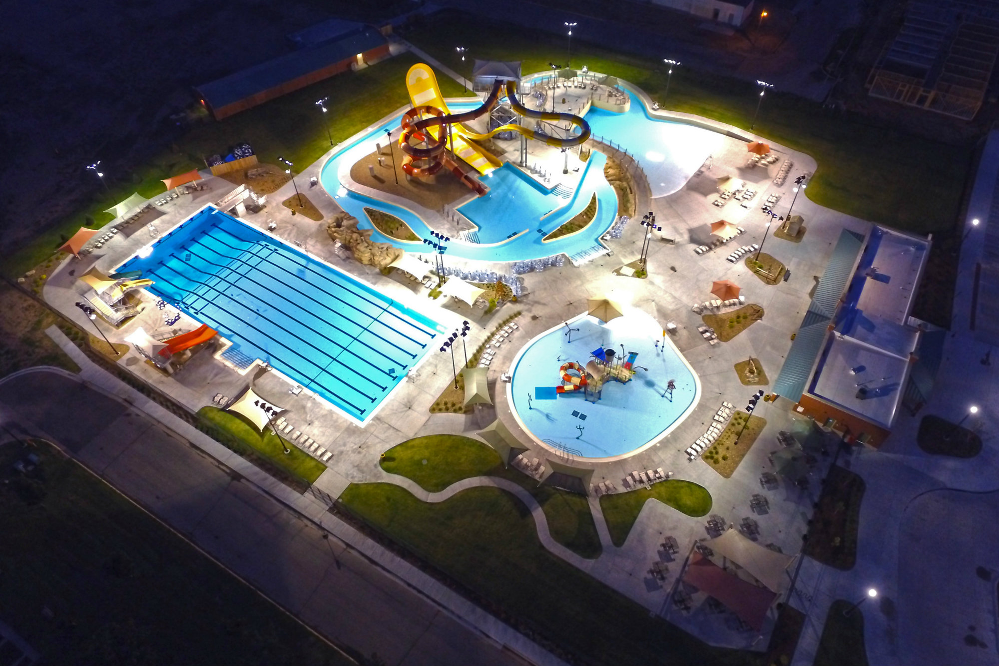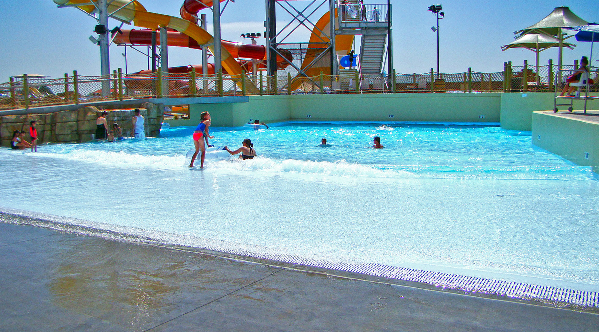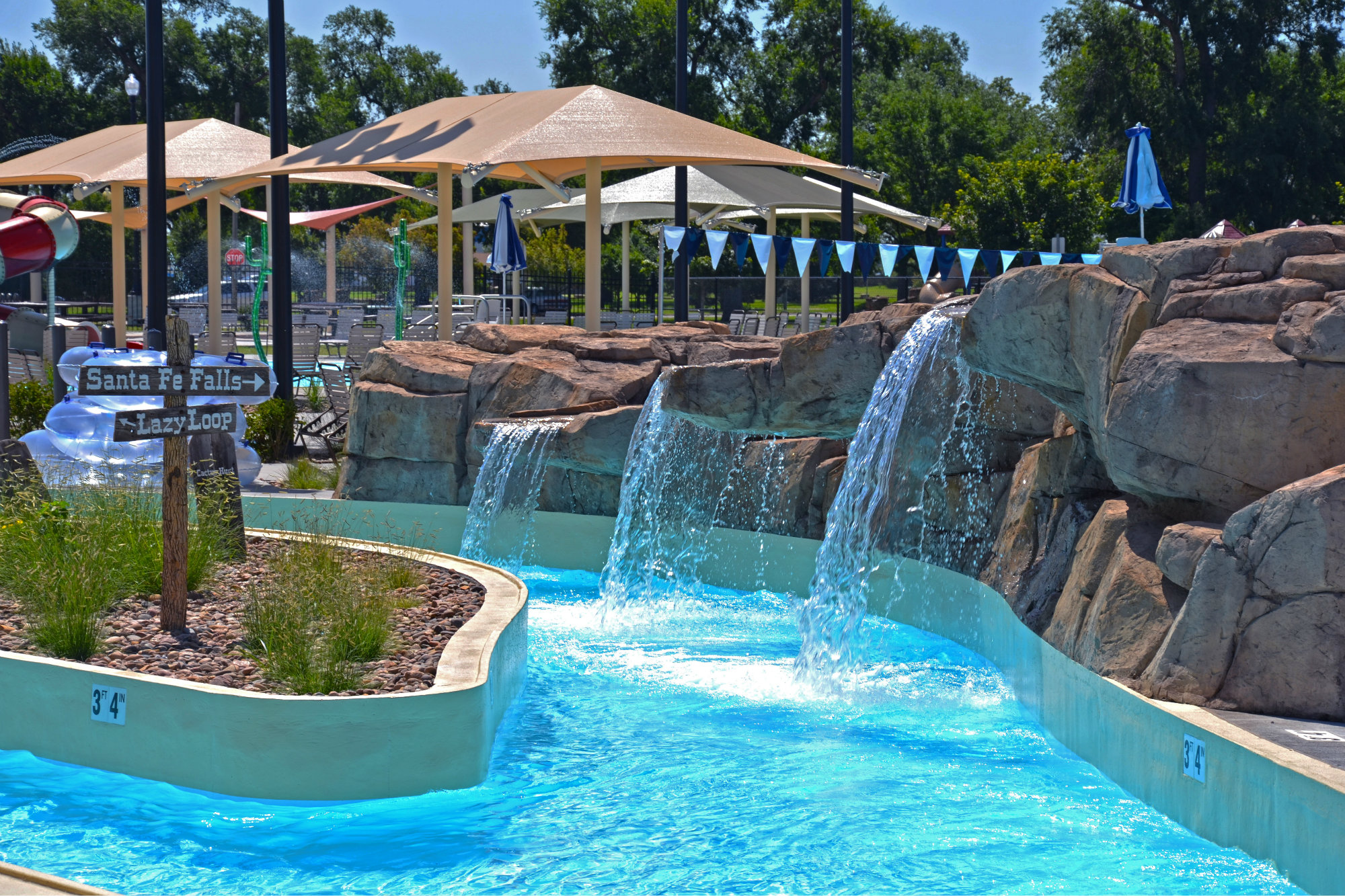 Play features include several spray features, slides and waterfalls —and a 721-foot lazy river that passes through a wave pool.