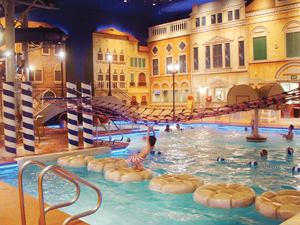 In creating the waterpark (open to hotel guests only), operators wanted a space where people could immerse themselves in Old World charm. The Venetian theme was integrated throughout the park, including the