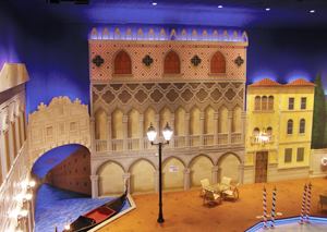 authentic building facades, bridges and gondolas. In creating the Italian