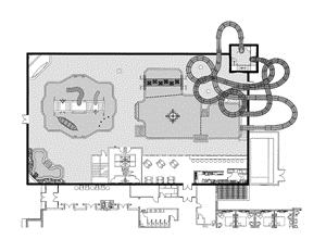 To help maintain the illusion, the HVAC system is completely hidden above the false sky, and all air returns and ductwork in the lower level of the waterpark, such as the low air return positioned between the ends of the body water slides, are cleverly disguised with paint and theming.