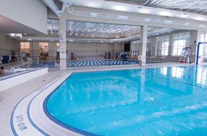 Perhaps the most notable aspects of the facility are the lifestyle, fitness and therapy amenities. The center accommodates aquatic fitness and therapy with three pools and a whirlpool spa. The competition pool, spa and leisure pool are housed together, and the therapy pool is in a separate but contiguous space, visible through windows.