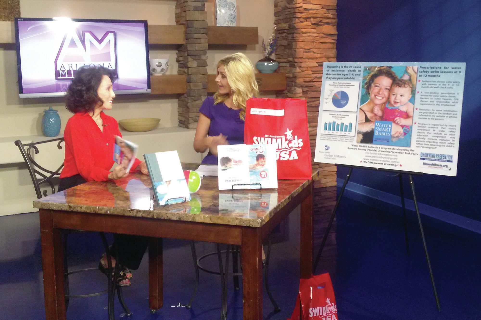 In addition, SWIMkids is an active member of the Drowning Prevention Coalition of Arizona, and has helped bring an innovative program to the state. Known as Water SMART Babies, the concept involves pediatricians writing “doctor’s prescriptions” for swim lessons on the child’s ninth and 12th month visits. Parents also are given a handbook that includes safety information. The program was featured on NBC’s “Today” show and a camera crew traveled to the SWIMkids facility to film a class for mothers and babies.