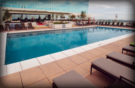 On the rooftop pool terrace, the design team combined the elements of water and fire to create an aquatic space as awe-inspiring as the majestic cityscape views.