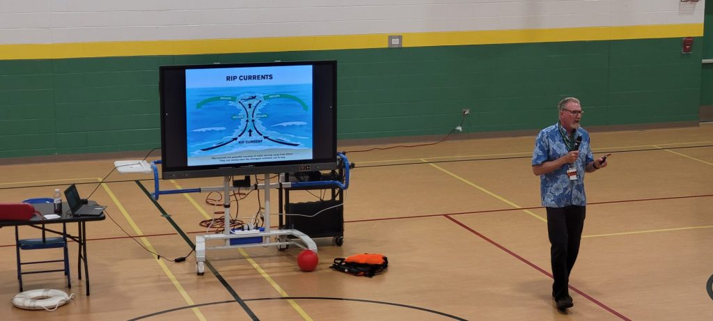 For elementary students, the tone stays playful: Pratt uses sea otters floating “holding hands” to reinforce that young kids must stay within arm’s reach of an adult. With older students, the message turns more direct: drowning risk rises when people overestimate their abilities or ignore surrounding