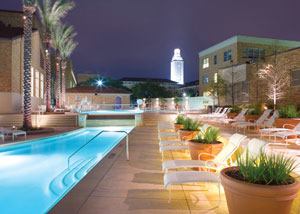This facility is specially crafted to support many activities throughout the day and night. With outstanding lighting for evening activities, most areas of the deck have multiple identities, changing from a sun-drenched pool complex by day to a richly detailed, resort-like atmosphere at night.