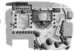 The reception garden is a unique venue within this facility. Using crushed limestone aggregate as the finished deck surface, this area creates a wonderfully soft and comfortable environment. Flanked by highly articulated multi-trunk trees and a bamboo forest, the garden is a place of special respite for recreational users.
