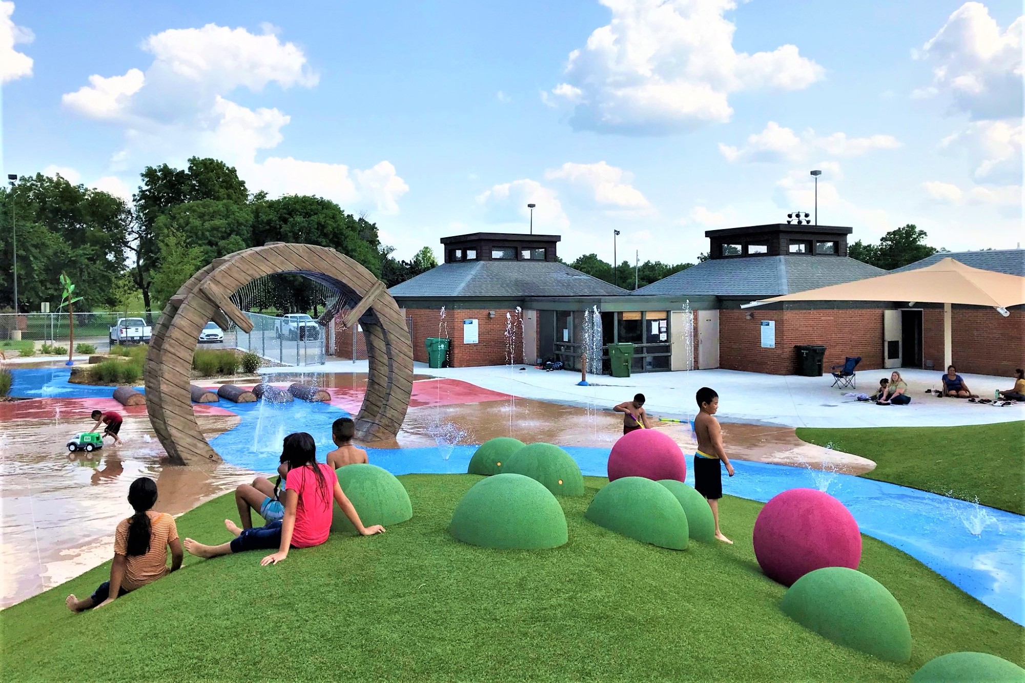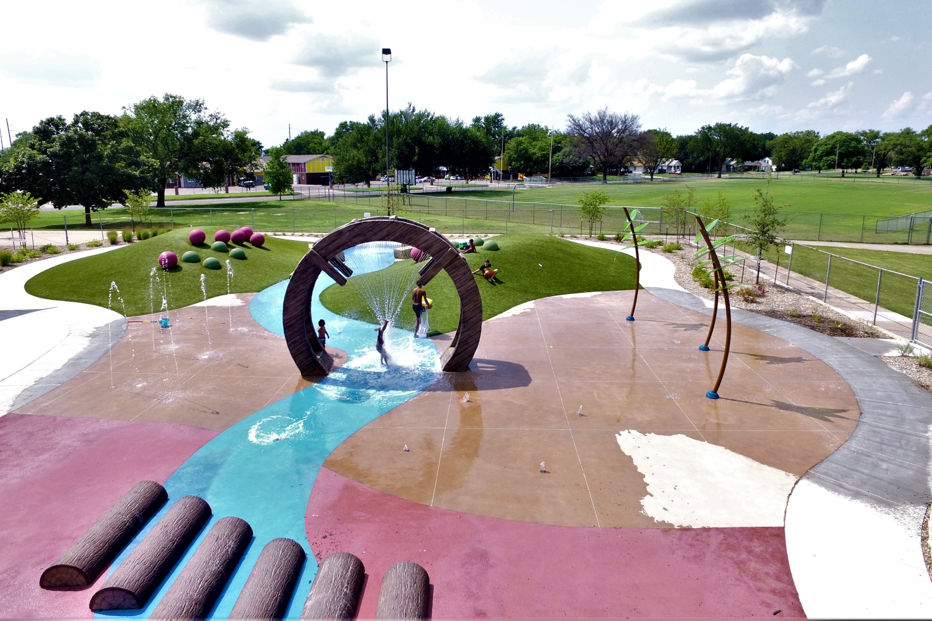 The Linwood Park Spray Ground is part of a citywide effort under which Wichita is converting a number of existing pools throughout the city into spray parks, each unique to reflect the neighborhood’s character. This way, local citizens can travel from one to the other and remain engaged.