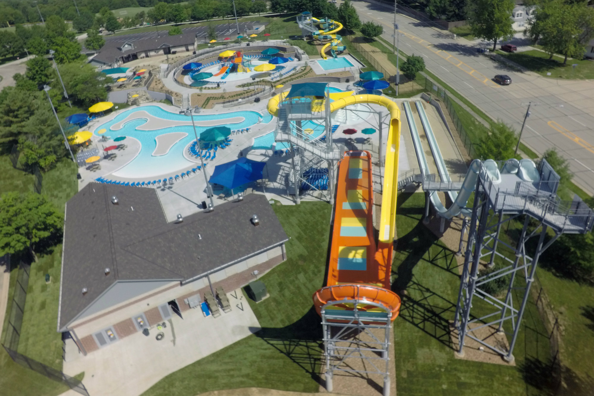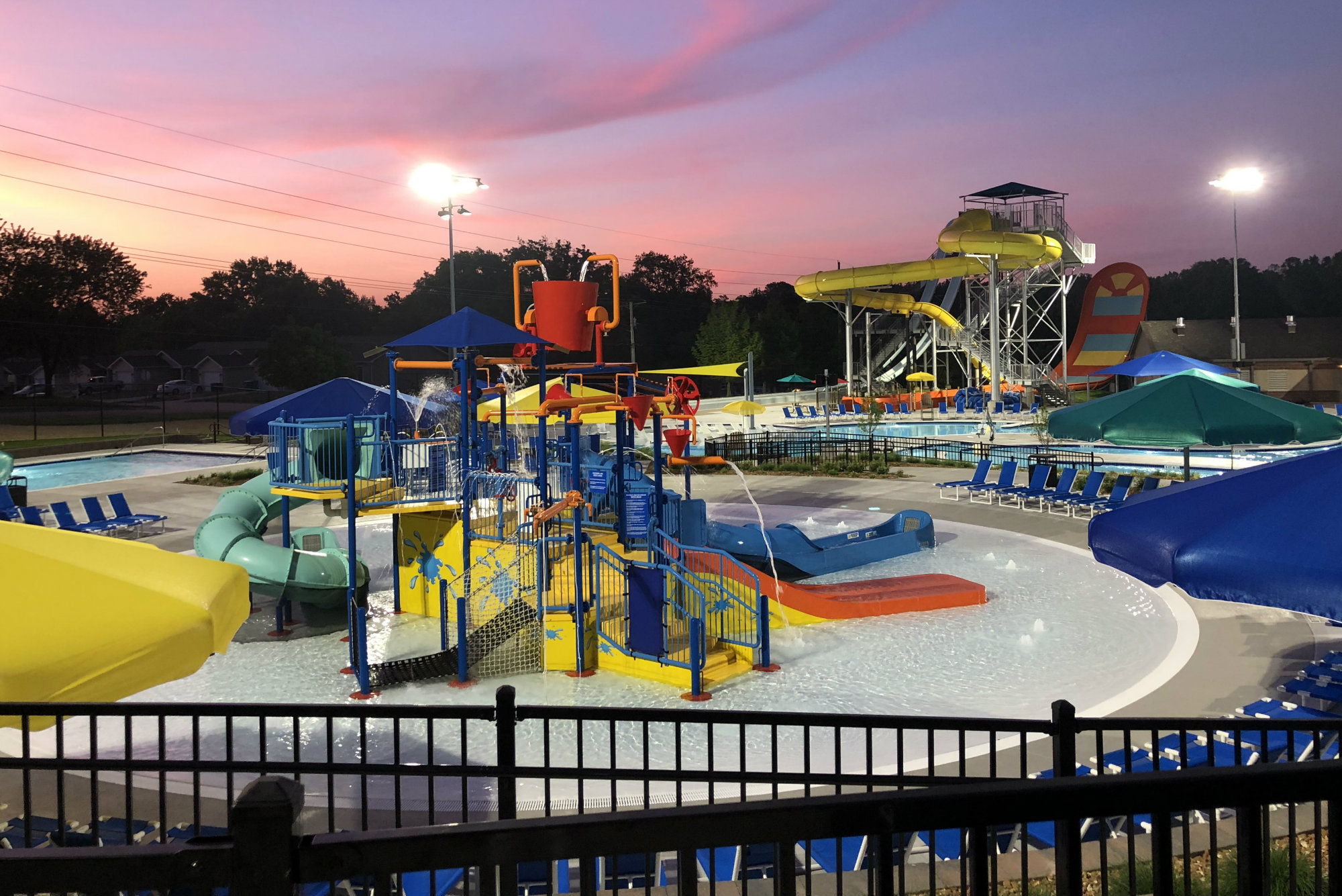 The city facility gained several new attractions so it could serve as the community waterpark. A 3,500-square-foot children’s pool features a large, multilevel aquatic play structure. A 4,900-sq. ft. leisure pool is enhanced by a large, shaded water lounge. The 5,600 sq. ft. lazy river contains a beach entry and underwater seating alcove. Body flume water slides drop into a dedicated 1,100 sq. ft. plunge pool.