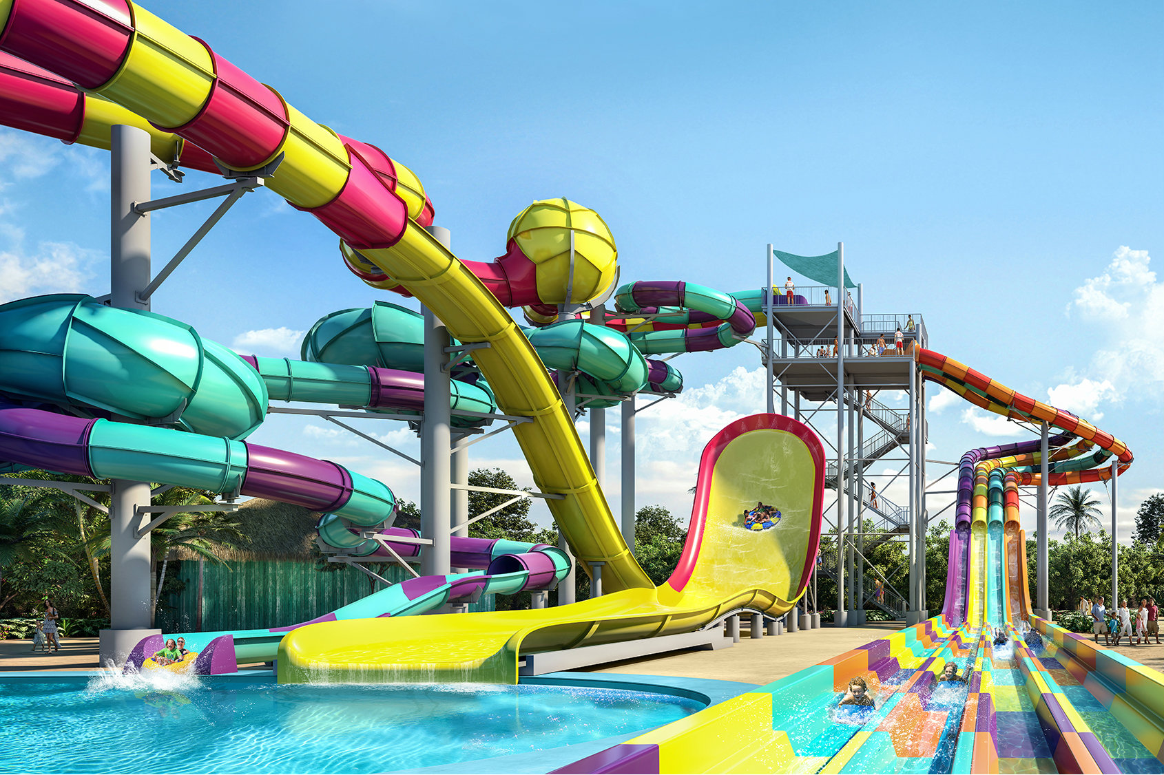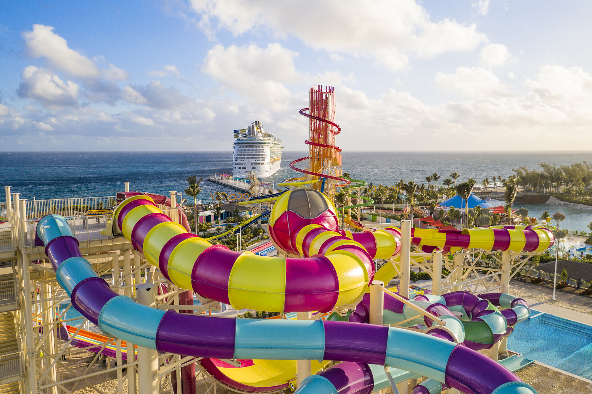 Complementing existing attractions for young children and adults, the 500,000-square foot Thrill Waterpark takes its helm at the center of the ever-expanding destination, where ships dock for a day-long visit.
