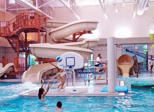 The year-round indoor aquatics facility at the TCC also has options for those who want to stay active: four lap lanes, a warm-water therapy pool and a leisure pool with several slides spilling into it. And when it comes to programming, both venues offer an extensive array of swim lessons for preschoolers (seven different classes), older kids and teens, as well as lifeguarding instruction and private lessons.
