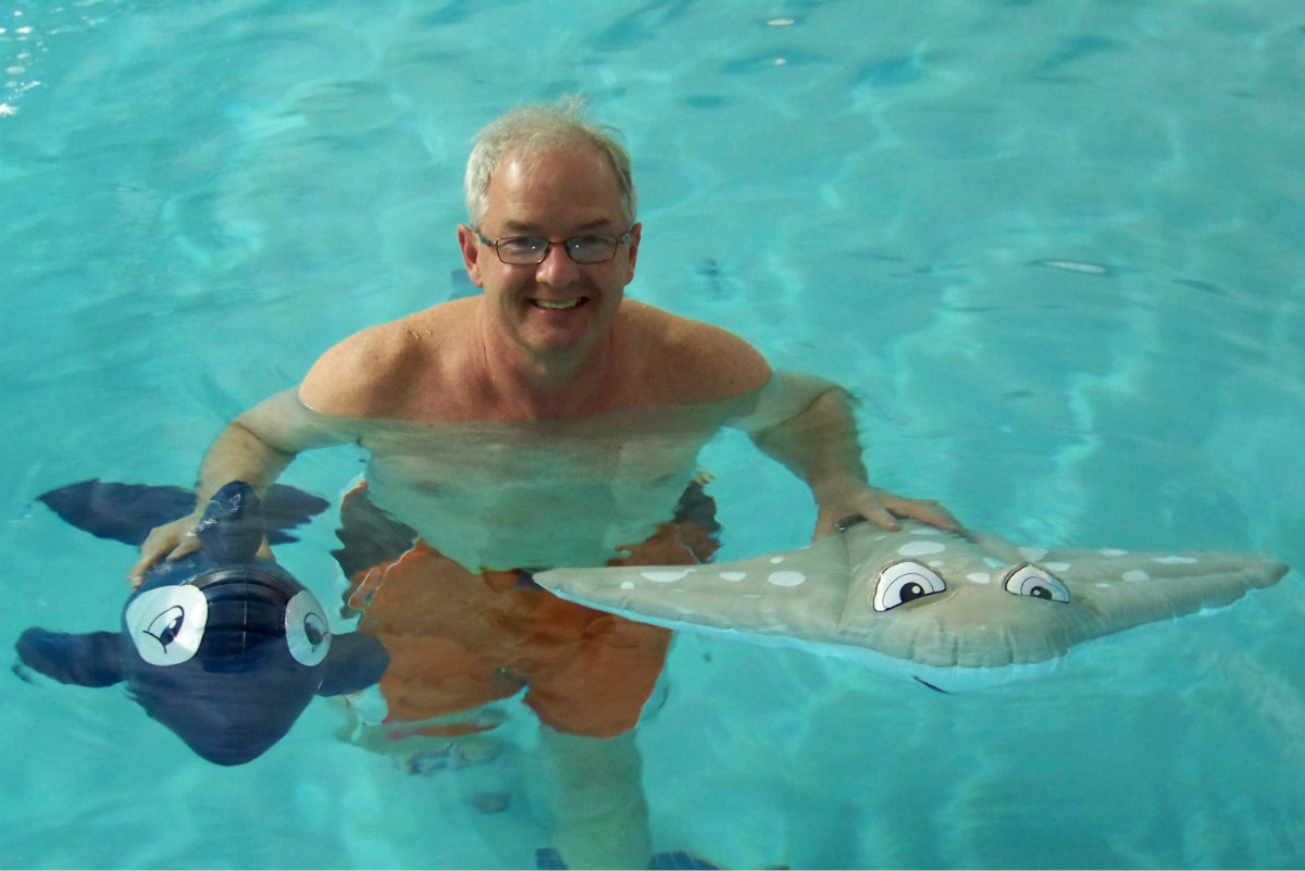 A former minister, the founder and inventor of Pool-Pets has spent the last year and a half traveling 60,000 miles with his wife, Debi, to market what he says is the only life-size water inflatable toy on the market. After raising $100,000 to launch the first model, an Orca, the couple gave away all their possessions to their children, sold their home, bought a 2013 Dodge Town and Country and began their journey.