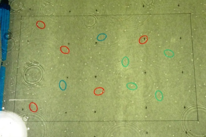 Figure 4 in the slideshow shows an example of the second method of testing pool coverage. In this test, LED lights were mounted on the automatic pool cleaner, and long-exposure photography was used to track the path of the pool cleaner around the surface of the pool as it performed a single cleaning cycle.