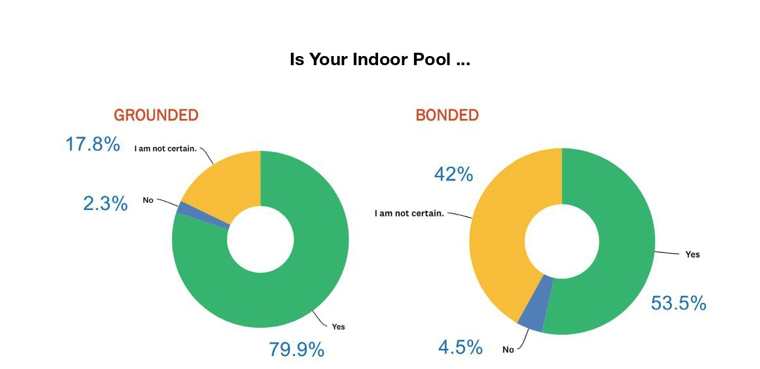 Of survey takers, between 42% (indoor) and 48% (outdoor) did not know if their pools were bonded. Between 18% (indoor) and 23% (outdoor) could not say if their pools were grounded.