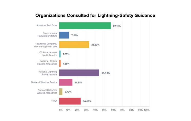 Survey results confirmed that while the vast majority of outdoor pools do close during thunderstorms (98%), they vary in timing and duration of the closure, and instructions given to swimmers.