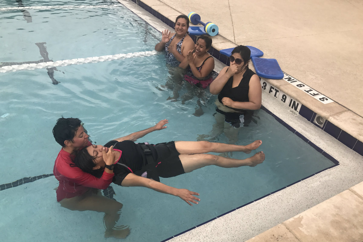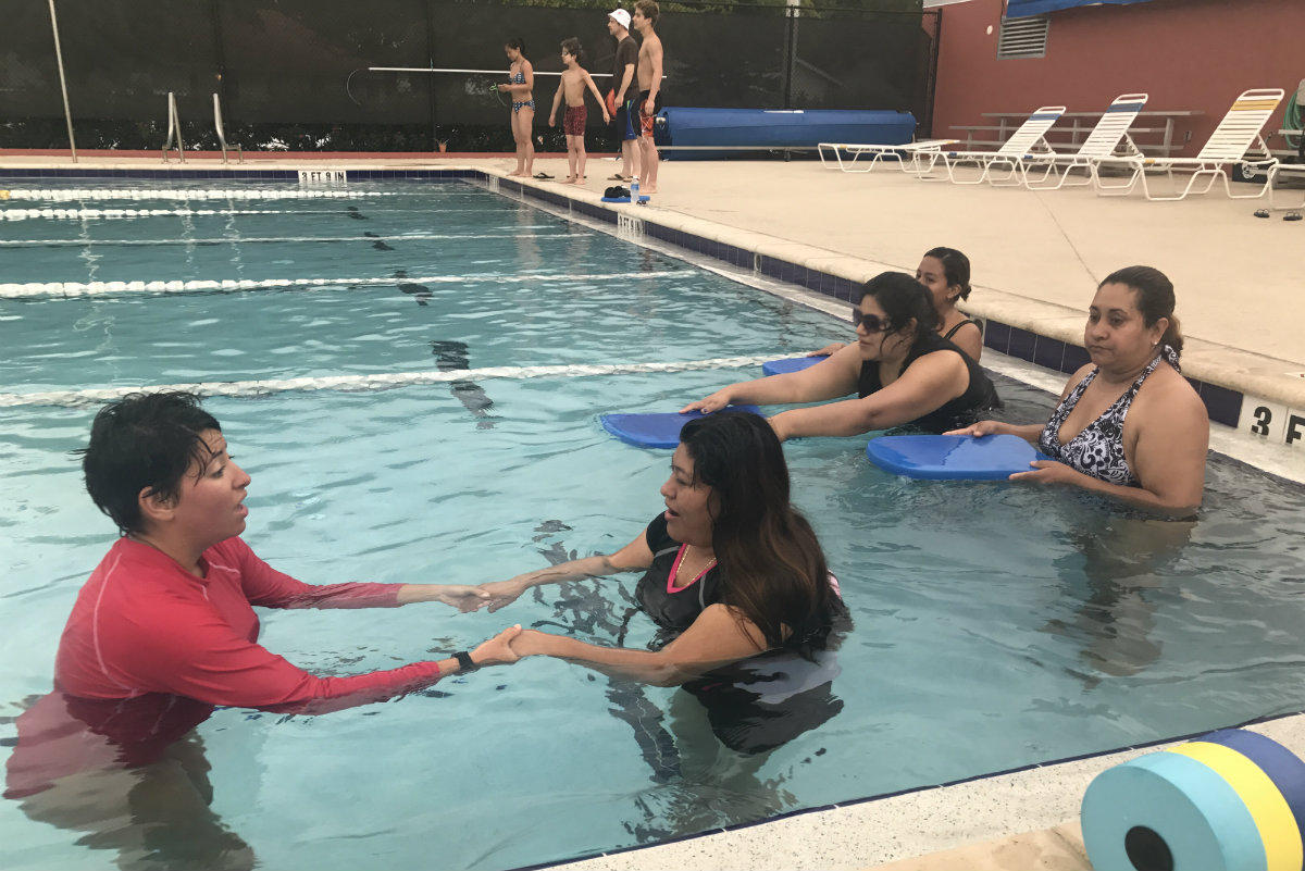 Eventually DiGrigoli asked their mothers, the majority of which are Hispanic, if they’d be willing to help ease their kids into the program by splashing water on their faces and taking them to the pool themselves.