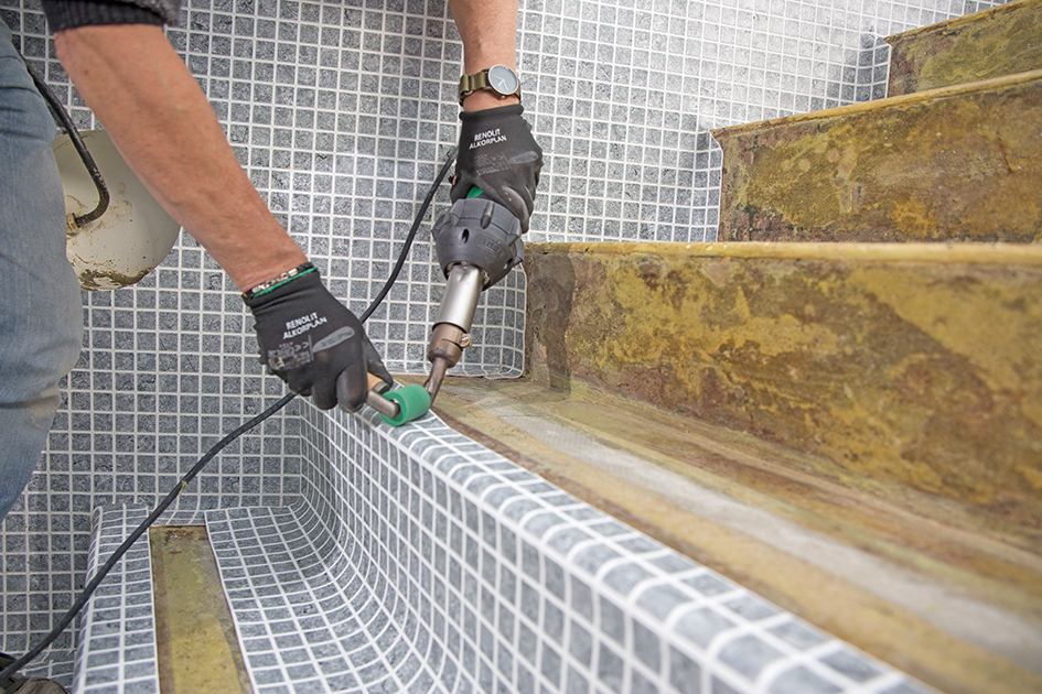 When this technique is used, viewers cannot see the joints where the PVC membranes meet on the floor. This particularly makes a difference at night, when the pool water is illuminated by in-pool lighting. In the daytime, when the water is moving, the traditional overlap welding is not apparent.