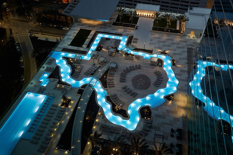 One of the more notable aspects of the project was the nonlinear geometry of the lazy river and surrounding features.