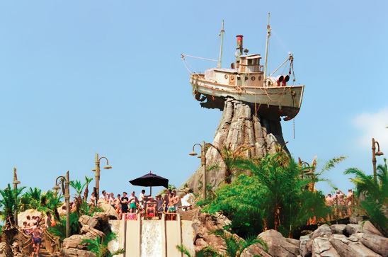 One of two Disney waterparks located in Orlando, Fla., Typhoon Lagoon is built around this “paradise after the storm” concept and lives up to the Disney reputation for excellent story-based theming. Guests are immersed in the story even before they enter the park, with parking-lot signs that retell the “legend” of the storm, according to Park Operations Manager Ron Hood.