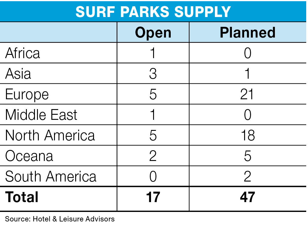 There currently are 17 surf parks open globally and another 47 proposed or in the planning and construction stages. With multiple surf pool technologies available, operators and investors, as well as residential and commercial developers, now are looking with great interest at the potential of this growing industry.