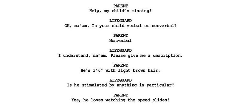 Scene: Imagine you’re approached by a parent saying his or her child has gone missing in the waterpark and has ASD. To find the youngster as quickly as possible, a lifeguard should ask two critical questions: