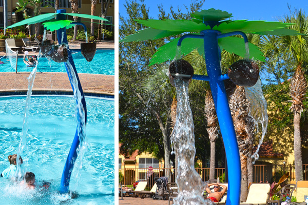 Water toys are made of stainless steel and powder-coated with a variety of fun, durable colors. The fiberglass integral parts have a UV resistant gel-coat providing strong resistance to chlorinated water – preventing chalking and degradation caused by heavy rain and UV rays.