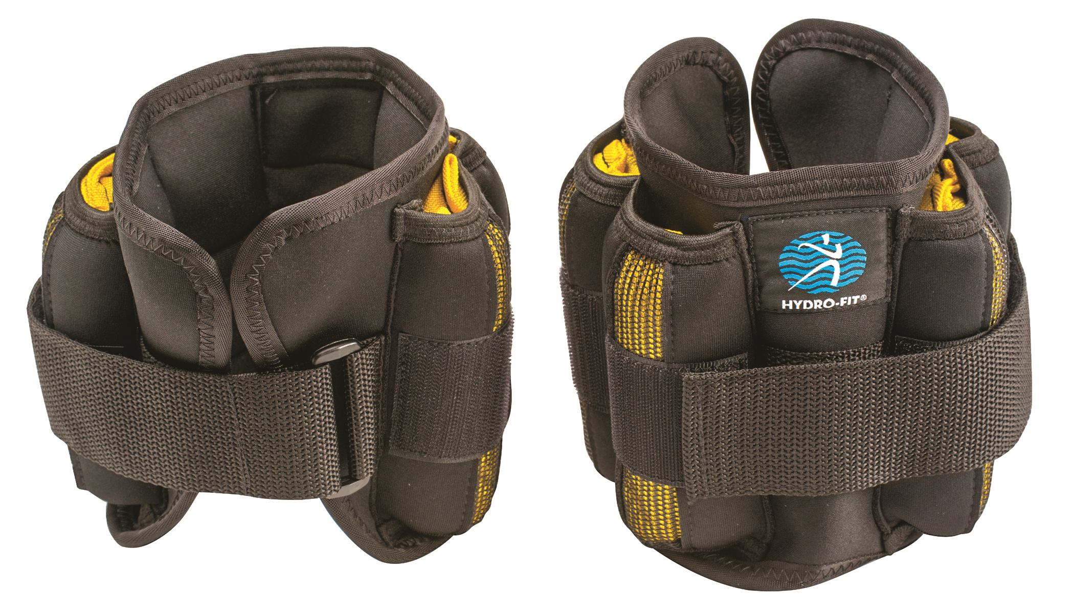 Constructed with soft, water-resistant polyester and sturdy polypropylene for lasting durability and comfort, Hydro-Fit Weighted Cuffs provide flexible and secure weighted support for aquatic fitness and wellness activities. The unique four-pocket design allows weight variations using multiple combinations of Hydro-Fit Water Weights. Available in three weights and two fastening systems: Standard and Secure Fit, which ensures a greater level of fastening when heavier weights are used. Contact: 800.346.7295, hydrofit.com